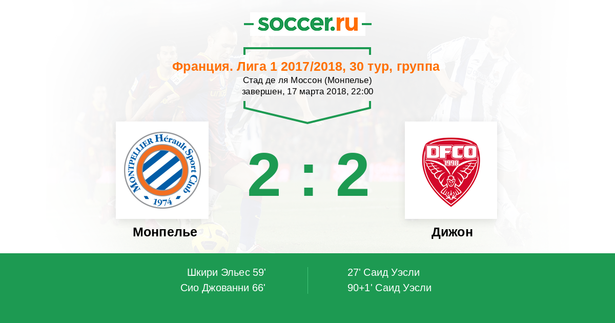 Протокол матча Монпелье против Дижон