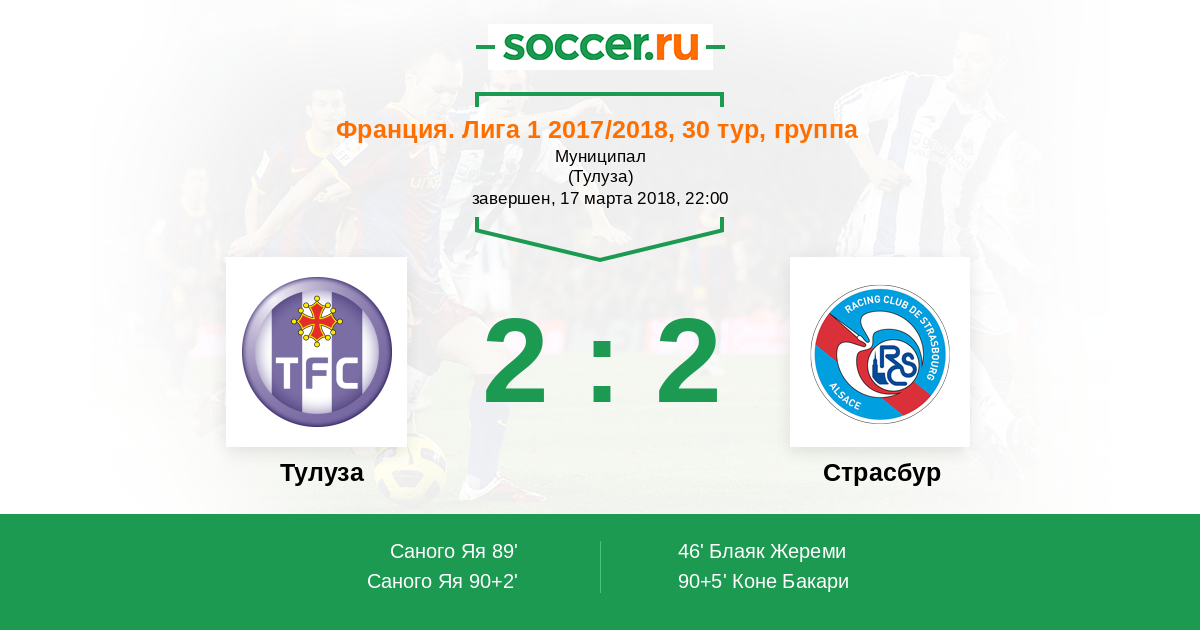 Протокол матча Тулуза против Страсбур