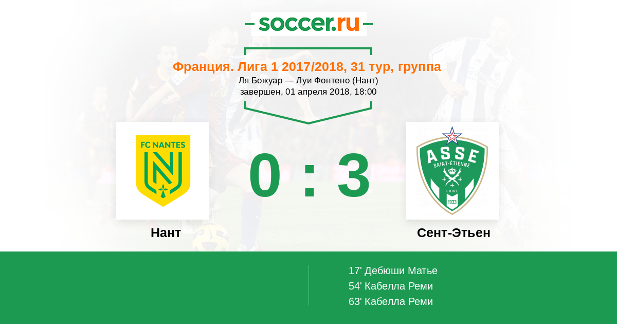 Протокол матча Нант против Сент-Этьен