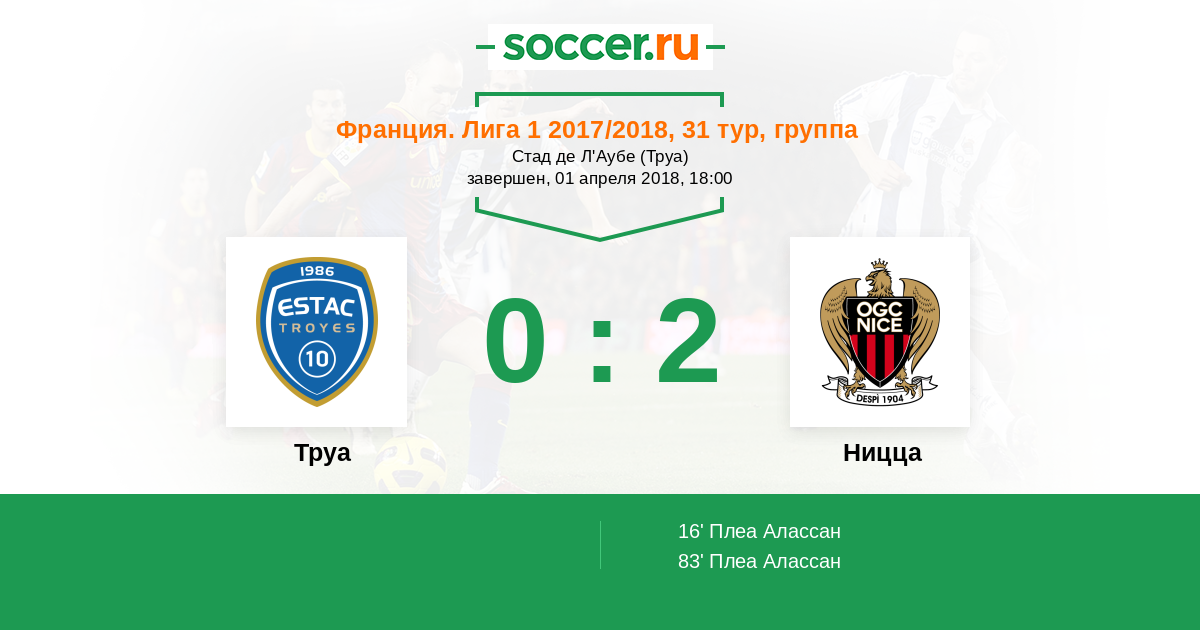 Протокол матча Труа против Ницца
