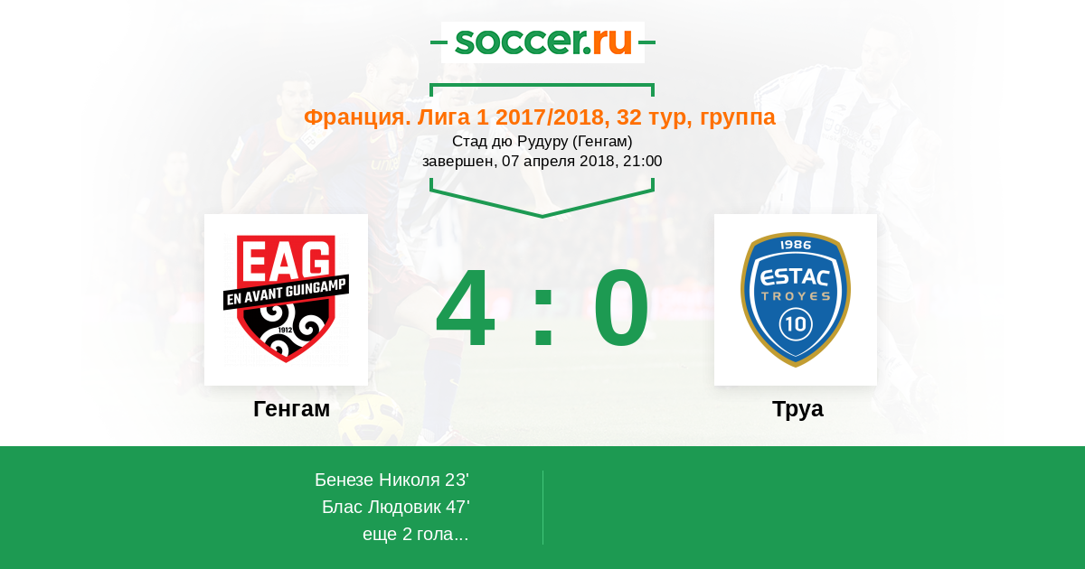 Протокол матча Генгам против Труа