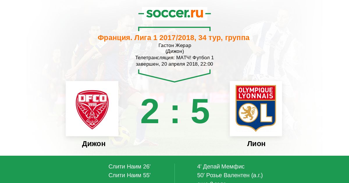 Протокол матча Дижон против Лион