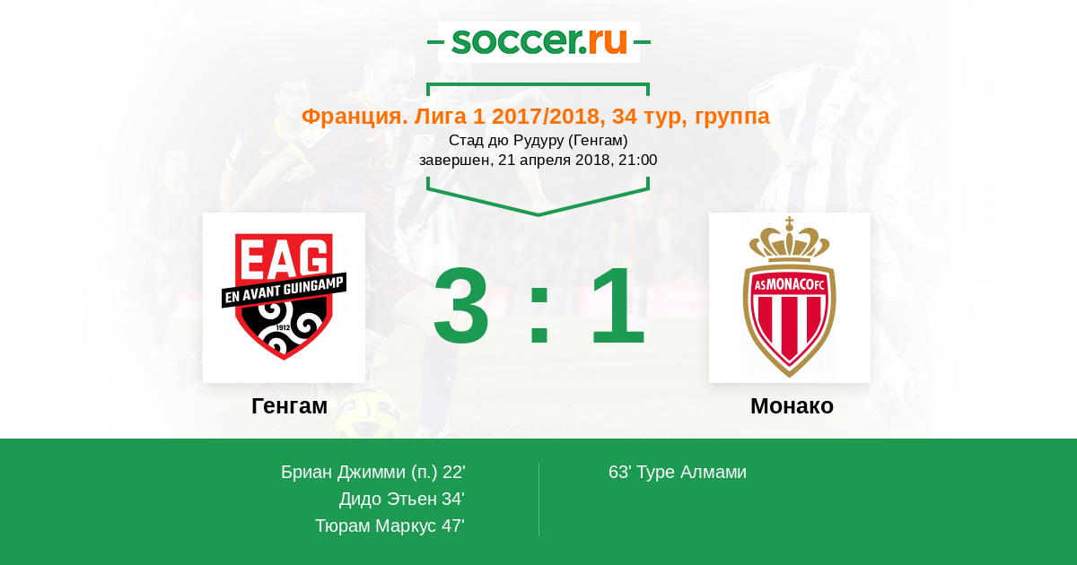 Протокол матча Генгам против Монако
