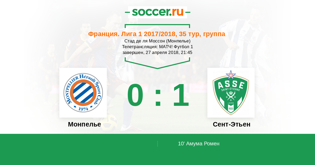 Протокол матча Монпелье против Сент-Этьен