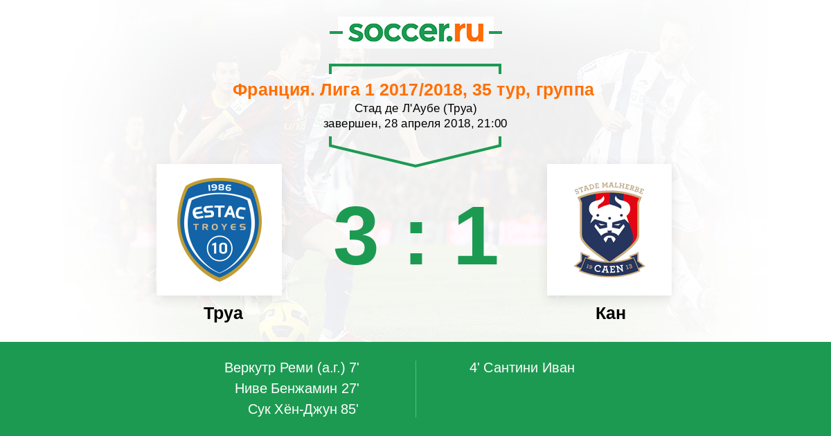 Протокол матча Труа против Кан