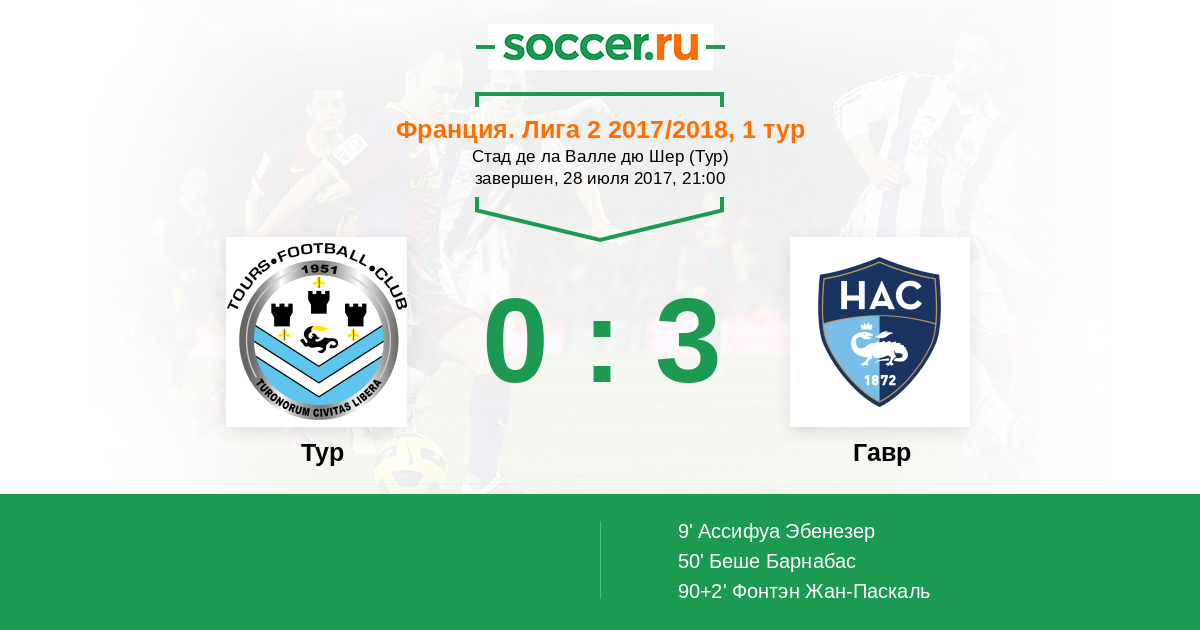 Протокол матча Тур против Гавр