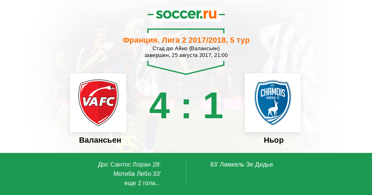 Протокол матча Валансьен против Ньор