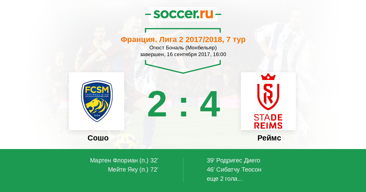 Протокол матча Сошо против Реймс