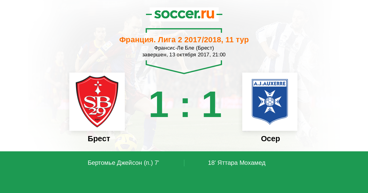 Протокол матча Брест против Осер