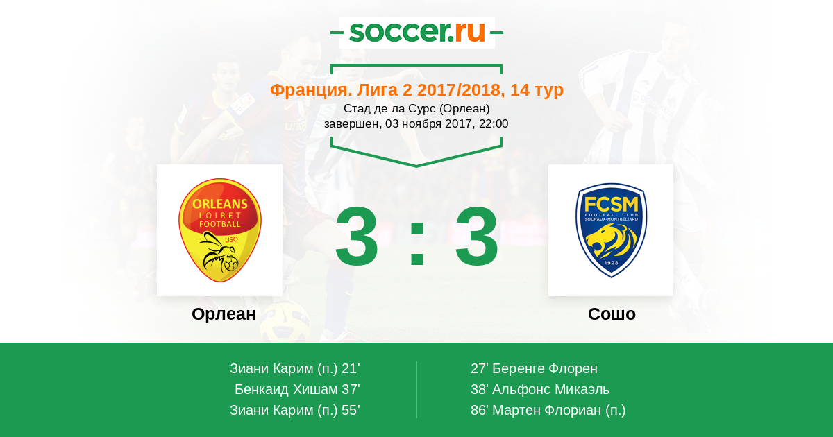Протокол матча Орлеан против Сошо