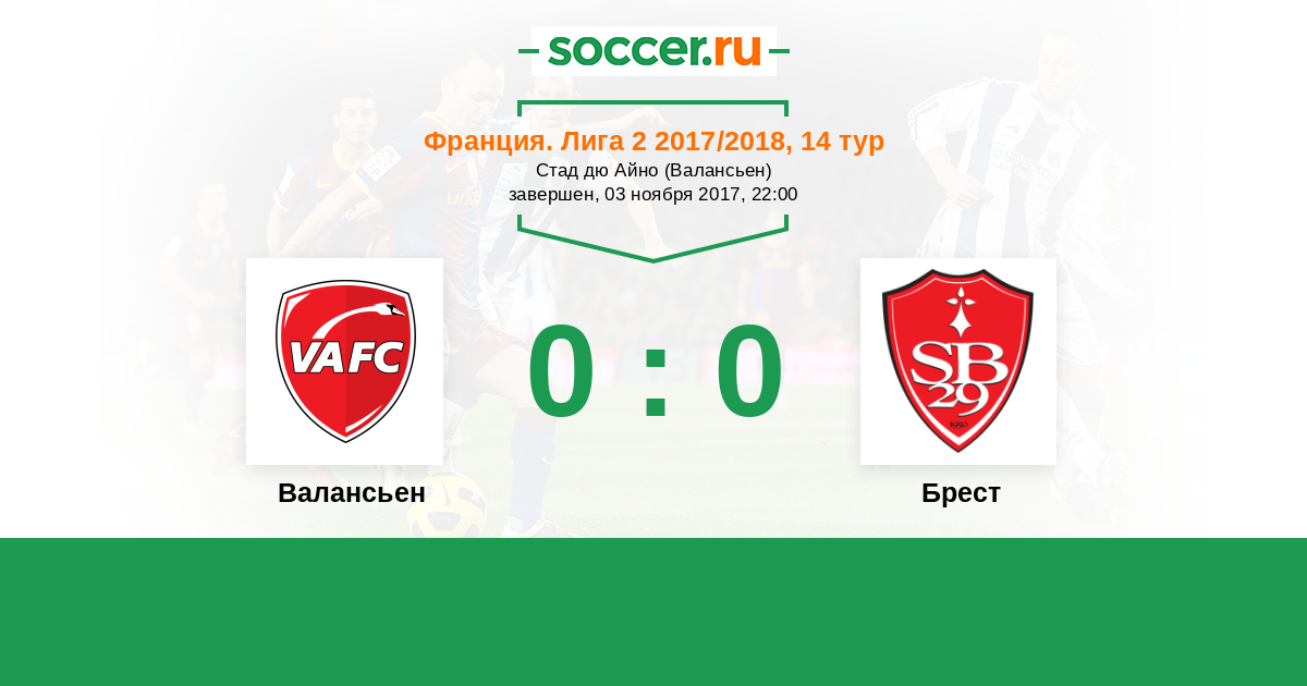 Протокол матча Валансьен против Брест