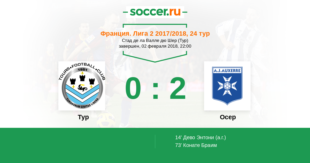 Протокол матча Тур против Осер