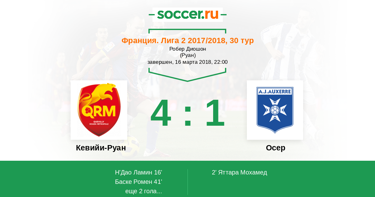 Протокол матча Кевийи-Руан против Осер