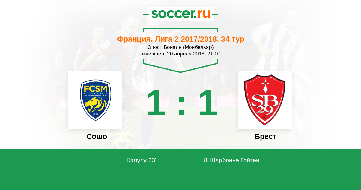 Протокол матча Сошо против Брест