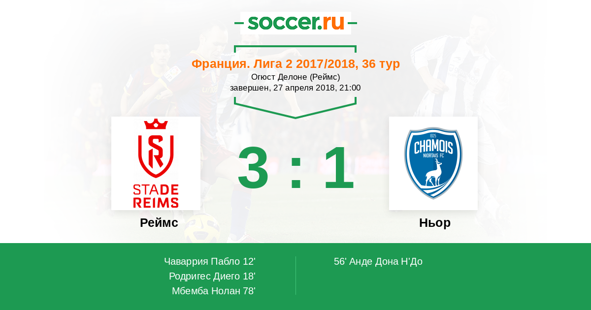 Протокол матча Реймс против Ньор