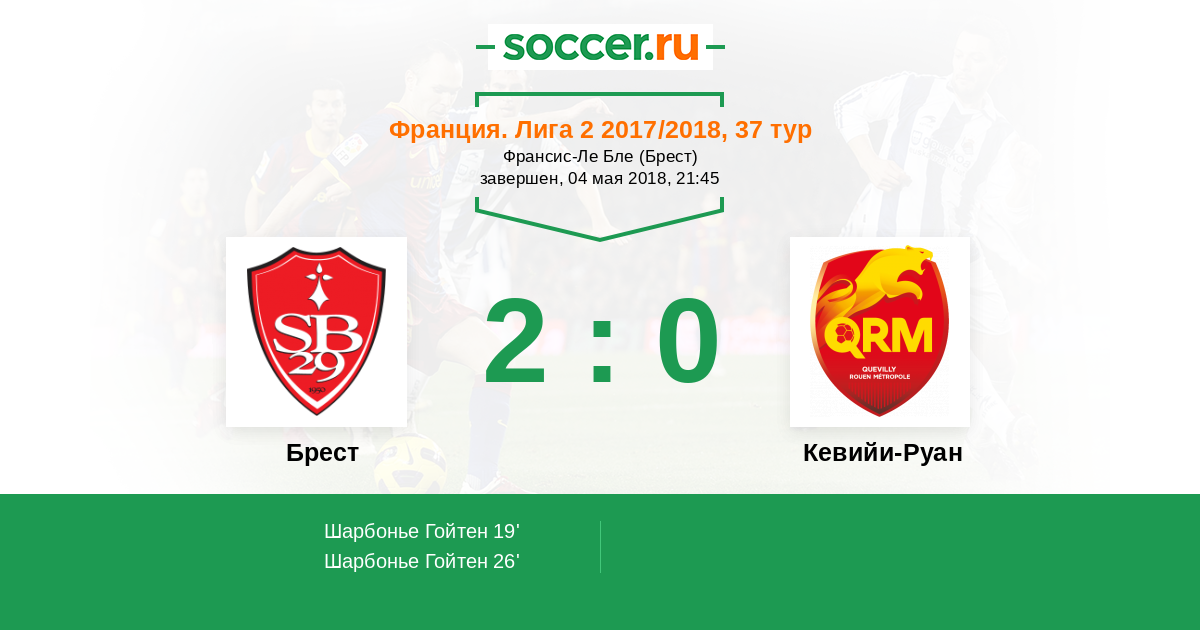 Протокол матча Брест против Кевийи-Руан