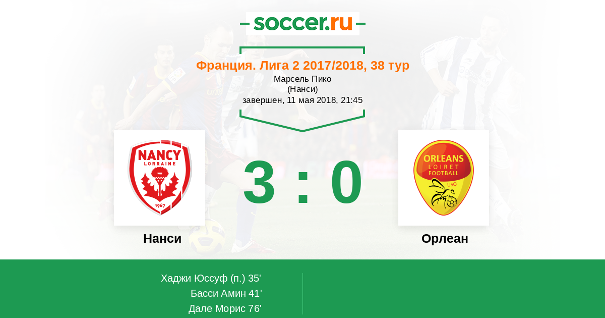 Протокол матча Нанси против Орлеан