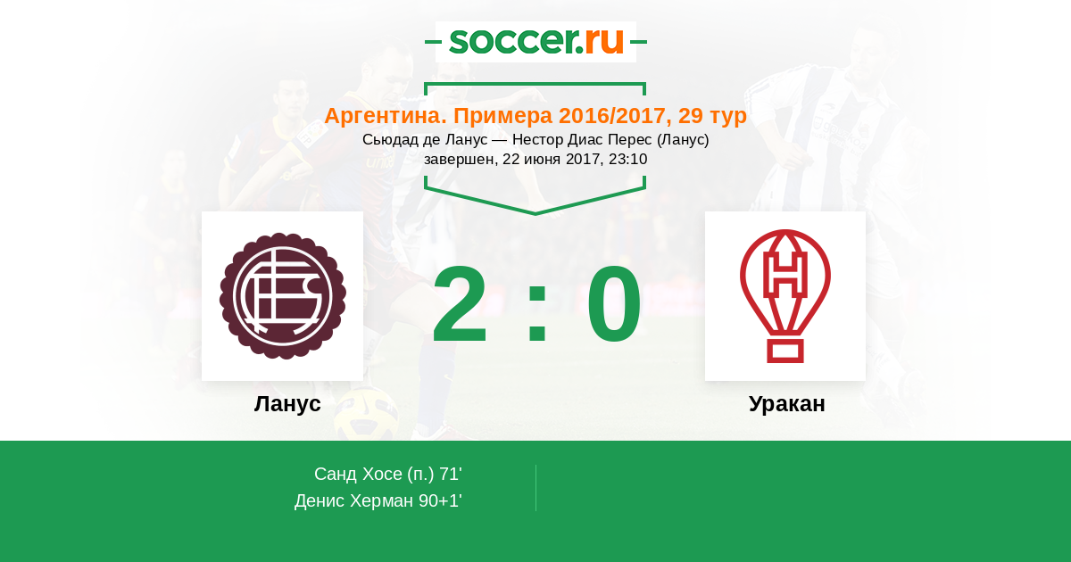 Протокол матча Ланус против Уракан