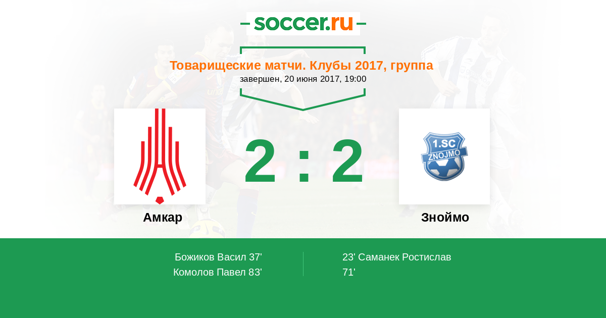 Протокол матча Амкар против Зноймо