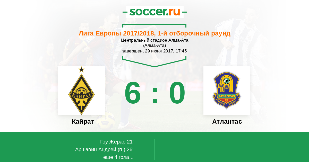 Протокол матча Кайрат против Атлантас