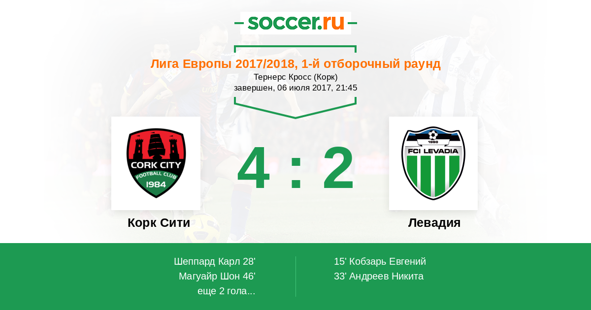 Протокол матча Корк Сити против Левадия