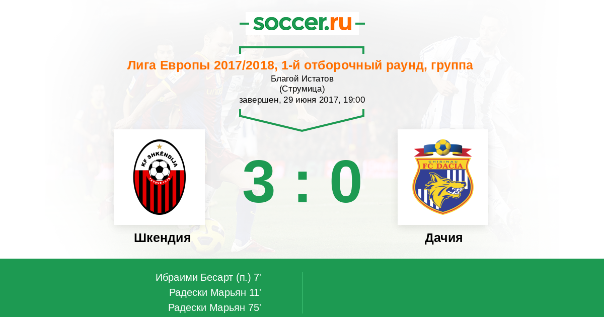 Протокол матча Шкендия против Дачия