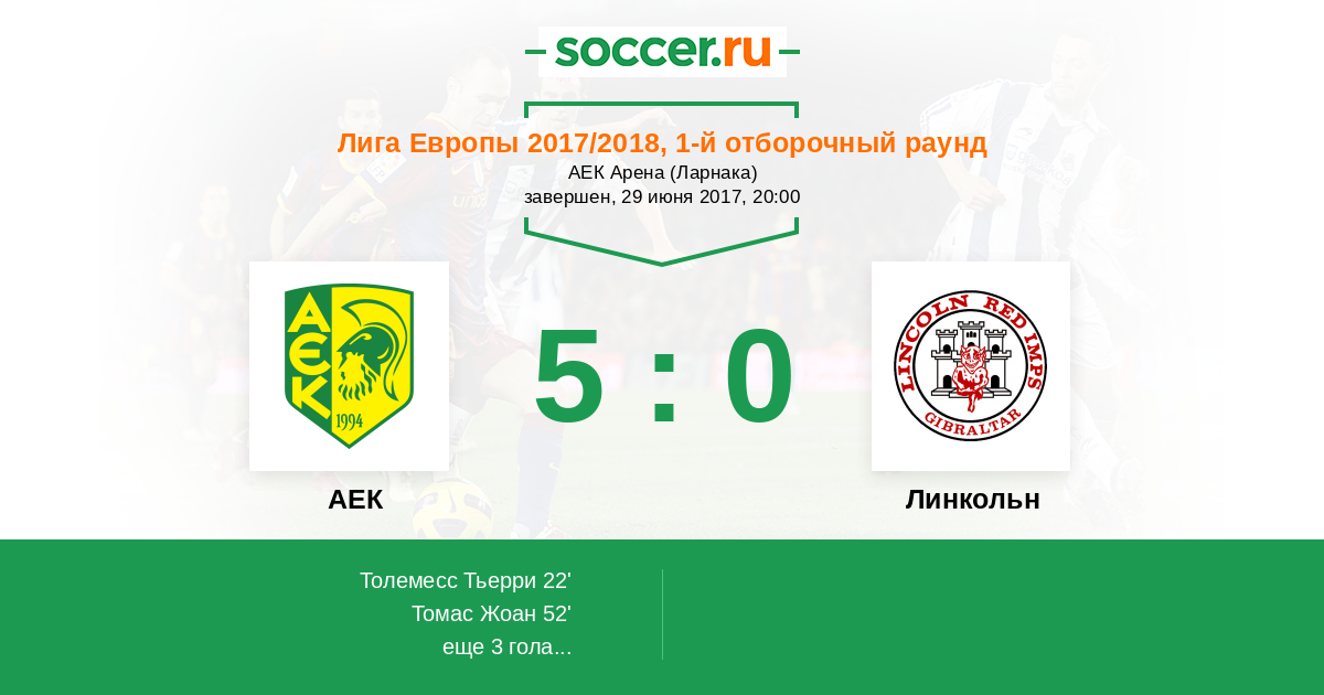 Протокол матча АЕК против Линкольн