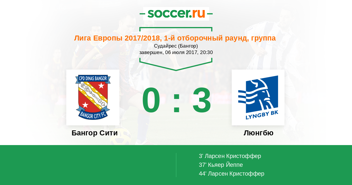 Протокол матча Бангор Сити против Люнгбю