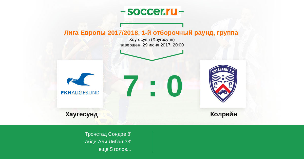 Протокол матча Хаугесунд против Колрейн
