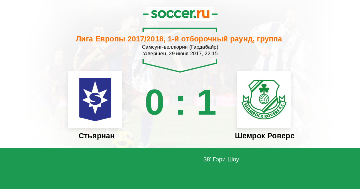 Протокол матча Стьярнан против Шемрок Роверс
