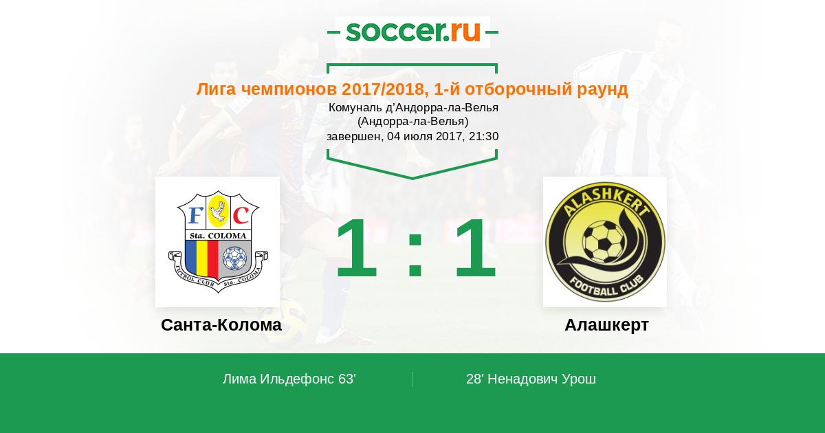 Протокол матча Санта-Колома против Алашкерт