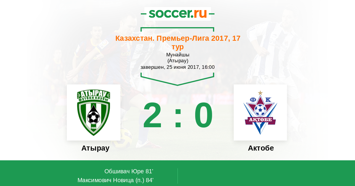 Протокол матча Атырау против Актобе
