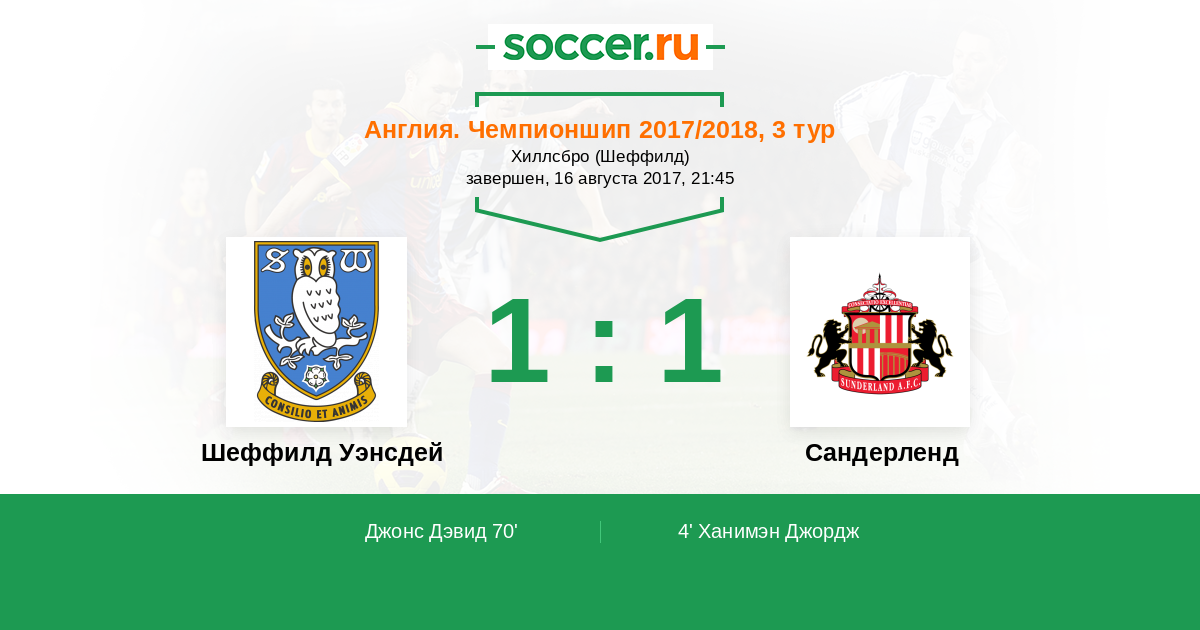 Протокол матча Шеффилд Уэнсдей против Сандерленд