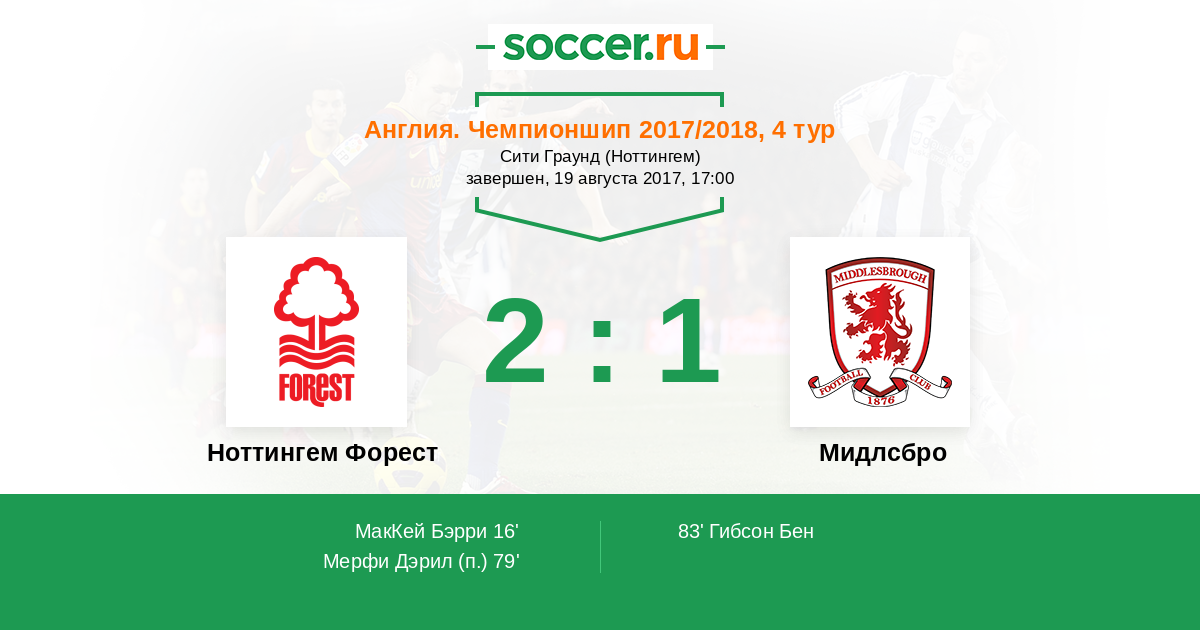 Протокол матча Ноттингем Форест против Мидлсбро