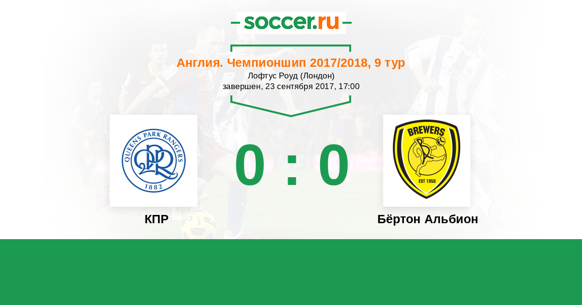 Протокол матча КПР против Бёртон Альбион