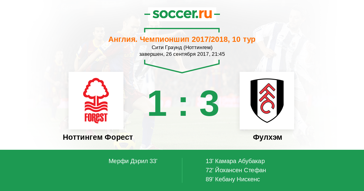 Протокол матча Ноттингем Форест против Фулхэм