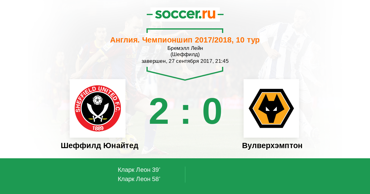 Протокол матча Шеффилд Юнайтед против Вулверхэмптон