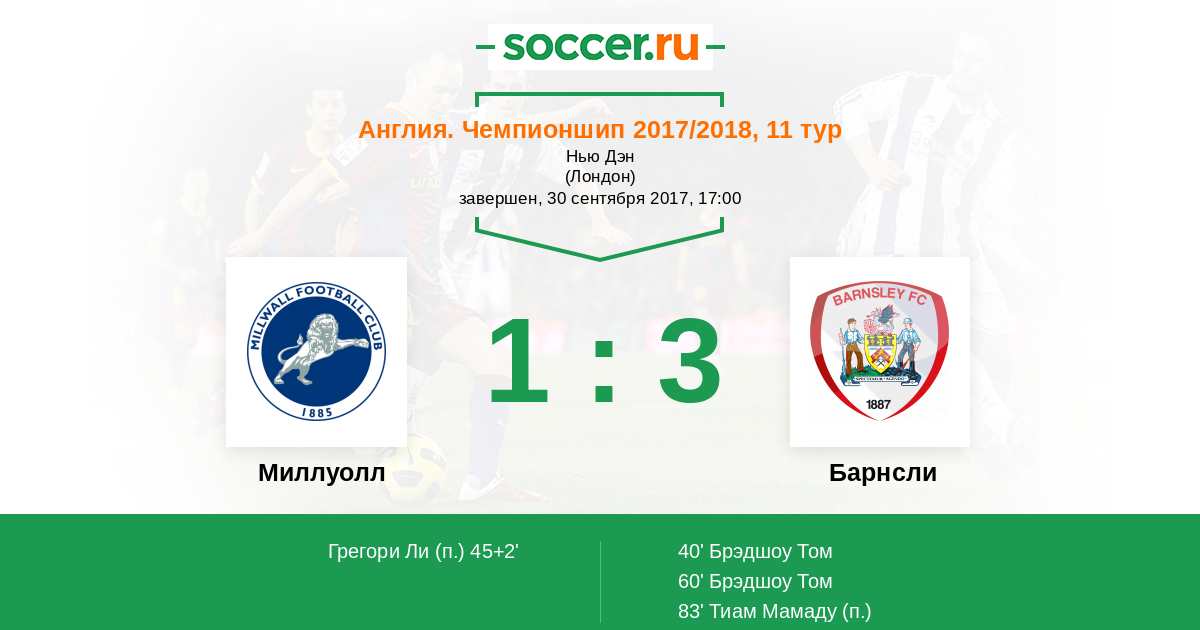 Протокол матча Миллуолл против Барнсли