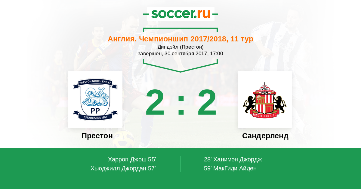 Протокол матча Престон против Сандерленд