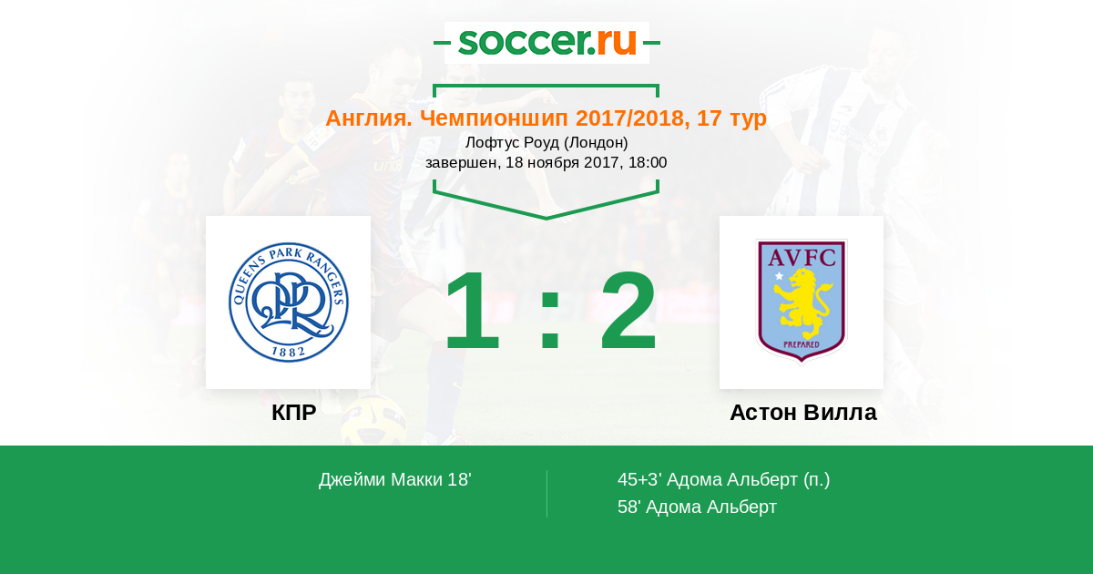 Протокол матча КПР против Астон Вилла