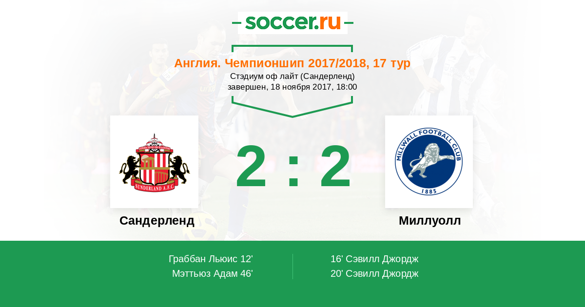 Протокол матча Сандерленд против Миллуолл