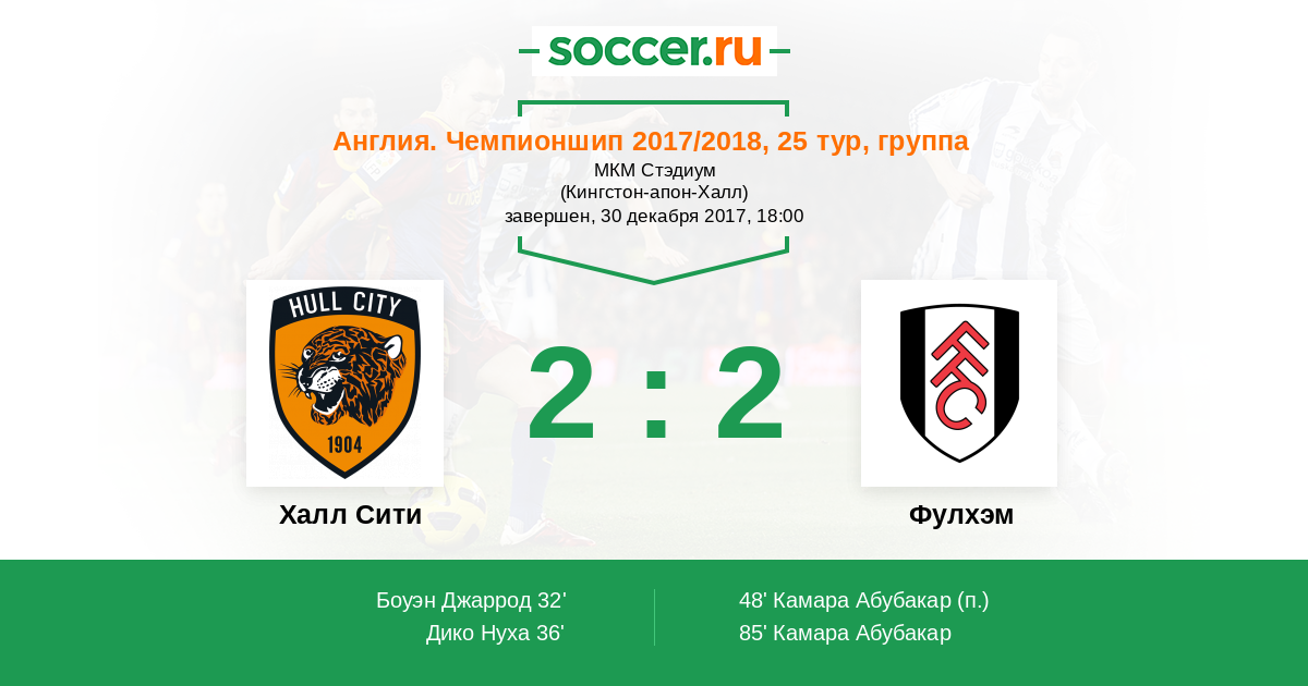 Протокол матча Халл Сити против Фулхэм