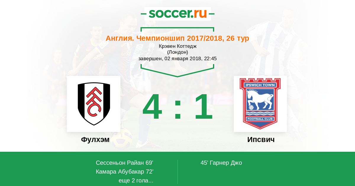 74' (3:1) Сессеньон Райан (3) (Кэрни Том (10))