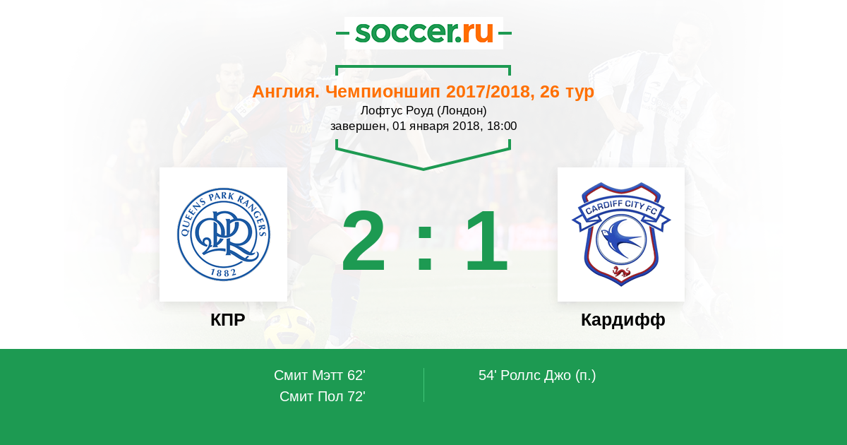 Протокол матча КПР против Кардифф