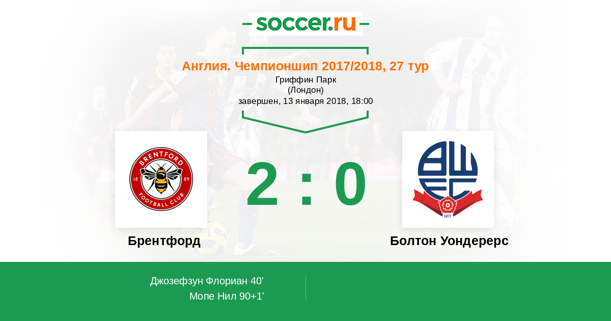 Протокол матча Брентфорд против Болтон Уондерерс