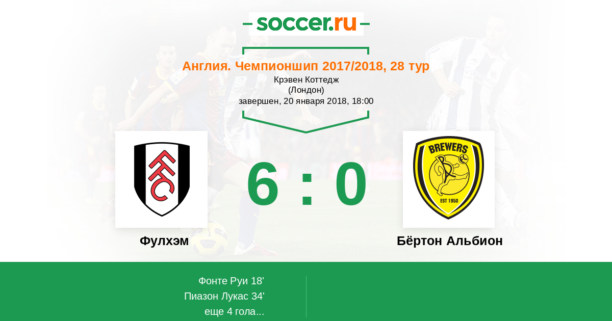 Протокол матча Фулхэм против Бёртон Альбион