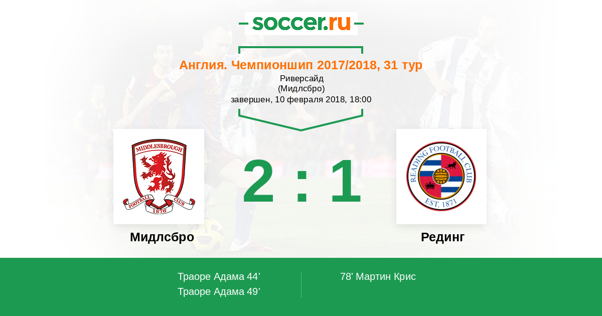 44' (1:0) Траоре Адама (37) (Даунинг Стюарт (19))