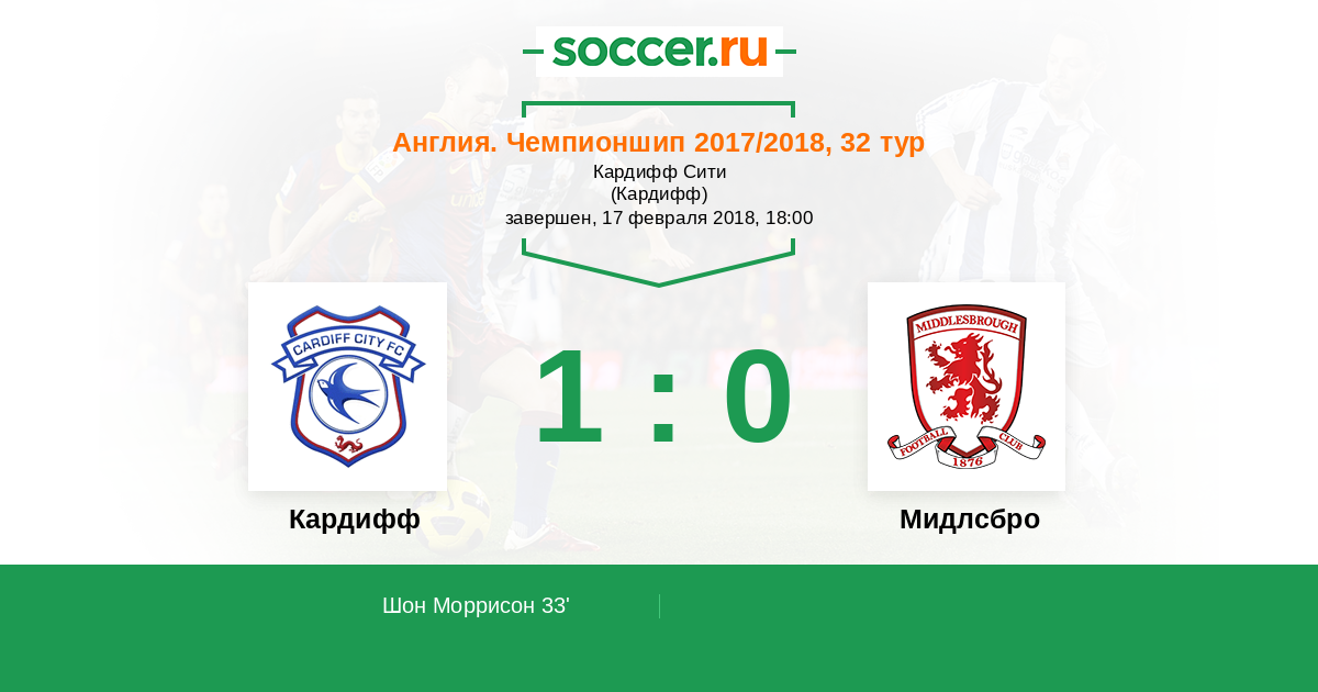 33' (1:0) Шон Моррисон (4) (Хойлетт Дэвид (33))
