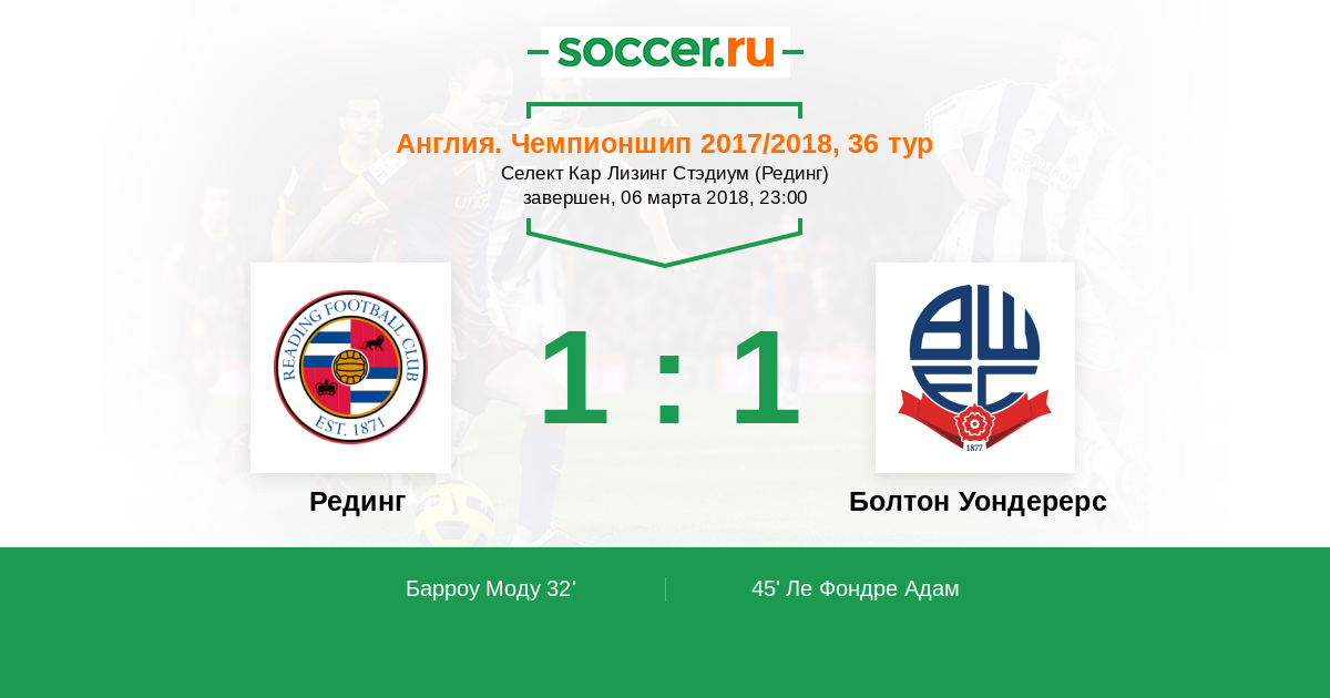 Протокол матча Рединг против Болтон Уондерерс