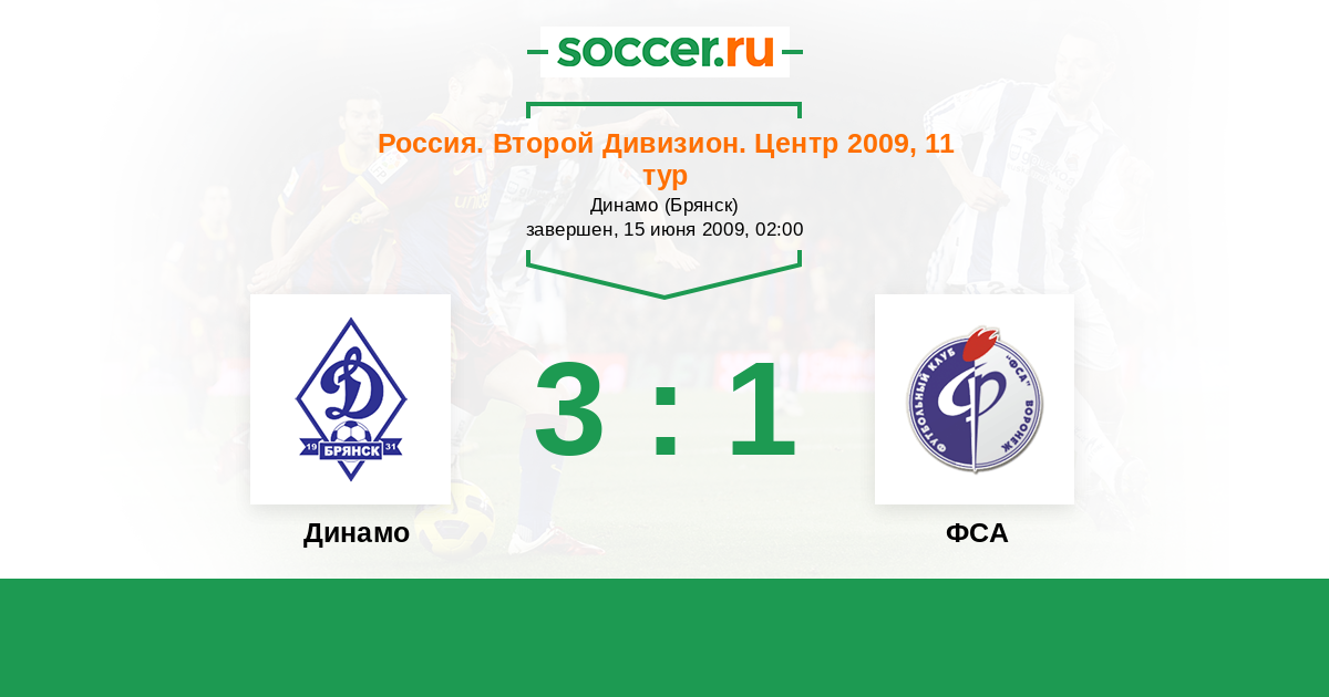Россия. Вторая лига. Группа 3 15.09.2009 ФСА Логотип футбольный клуб ФСА (Воронеж) 1:5 Логотип футбольный клуб Динамо Брянск Динамо Брянск